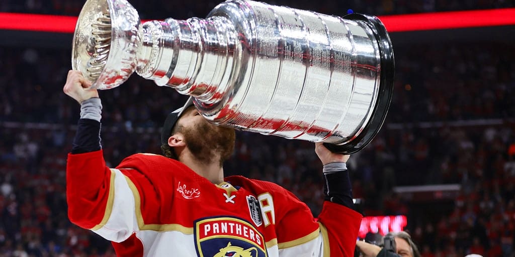 FloridaPanthersleftwingMatthewTkachuk,#19,kissesthecupafterwinninggamesevenofthe2024StanleyCupFinalagainsttheEdmontonOilersatAmerantBankArena.(SamNavarro-USATODAYSports)